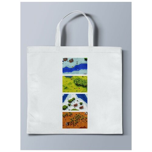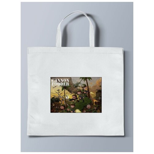Белая эко - сумка шоппер с принтом Игры Cannon Fodder - 33394