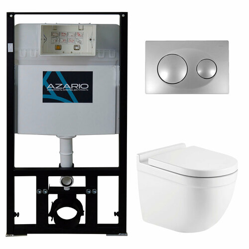 Сет AZARIO инсталляция с панелью смыва + унитаз Fora с сиденьем микролифт+ клавиша 0010, хром матовый AZ-8010-1000+AZ-8200-0010+AZ-0017 E-R