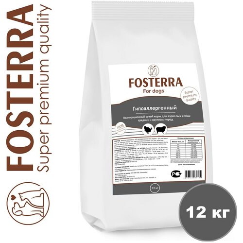 FOSTERRA Dog Гипоаллергенный корм супер премиум класса для взрослых собак средних и крупных пород 12 кг
