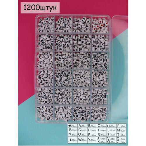 Бусины для рукоделия с английскими буквами 1200шт