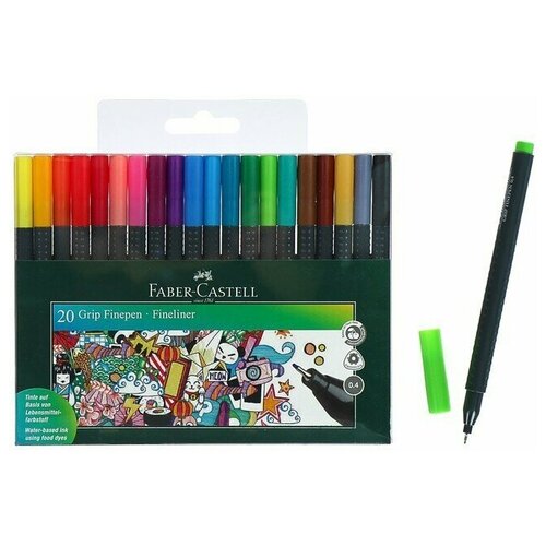 FABER-CASTELL Набор ручек капиллярных 20 цветов Faber-Castell GRIP 0.4 мм, в пластиковом футляре