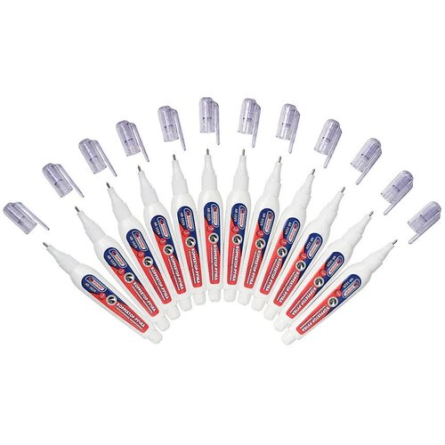 Набор ручка-корректор штрих замазка канцелярская, 12 шт, 7 мл, металлический наконечник 0,2 мм
