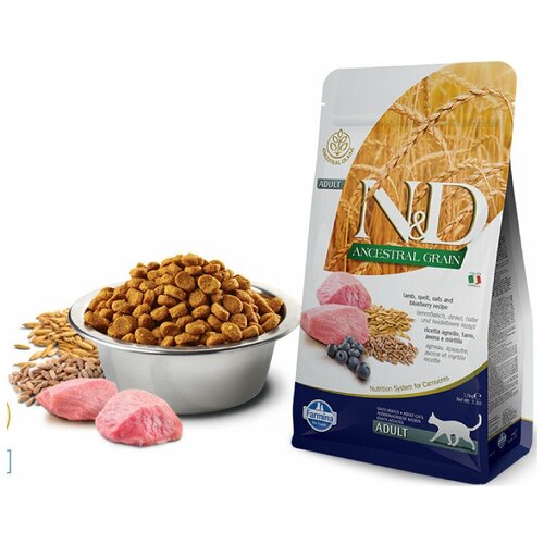 Farmina N&D ANCESTRAL GRAIN для кошек, ягненок, спельта, овес, черника 1,5 кг, 1 шт