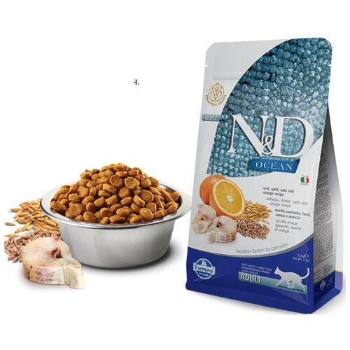 Farmina N&D OCEAN для кошек, треска, спельта, овес, апельcин 1,5 кг, 1 шт