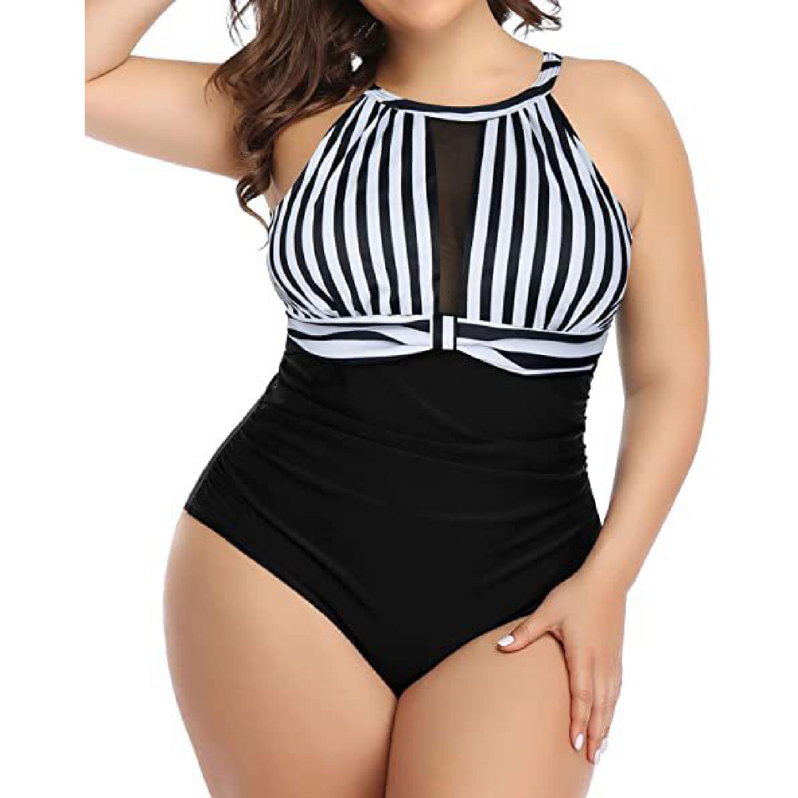2022 Черный белый купальник One Piece Большой размер Купальники Женщины Цельная пляжная одежда Принт Летний купальник Женский 4XL