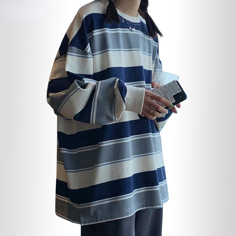 Весна Осень Полосатые толстовки Женщины Мода Толстовка Толстовка с длинным рукавом Джемпер Хлопок Пуловеры Повседневные Пальто Оверсайз Пальто