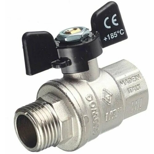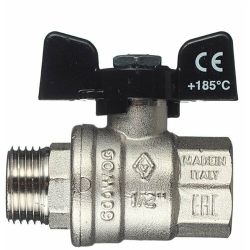 Кран шаровой латунный Bugatti (03070176) 1/2 ВР(г) х 1/2 НР(ш) бабочка прямой