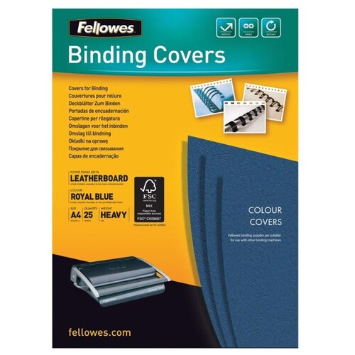 Обложка А4 Fellowes FS-53739 Дельта, кожа, 250г/кв.м, синий картон, 25л.