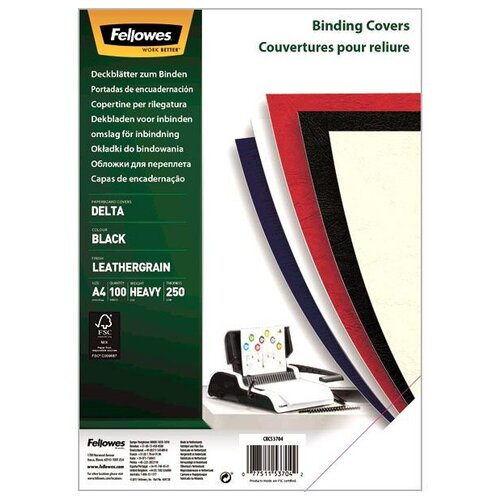 Обложка для переплета А3 Fellowes Delta, 250 г/кв. м, картон, черный, тиснение под кожу, 100шт. (FS-53744)