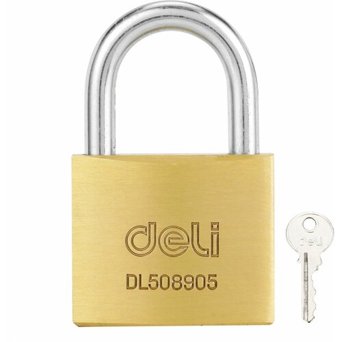 Замок навесной латунный 40мм Deli DL508905 (автомат, 3 ключа, закаленная дужка)