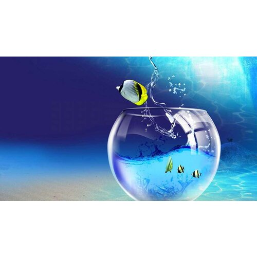 Постер на экокоже 60x110 LinxOne "Fish animated" интерьер для дома / декор на стену / дизайн
