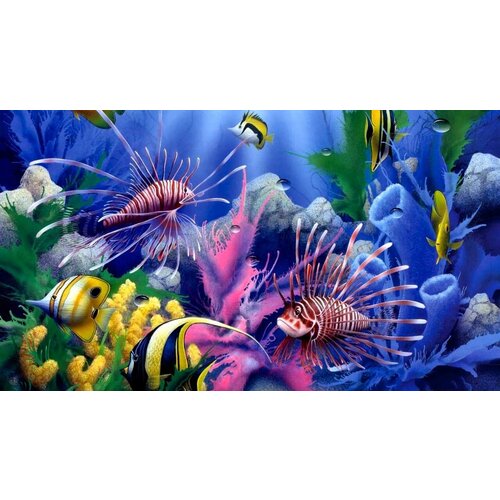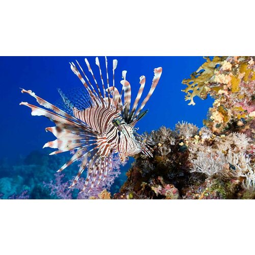 Картина на холсте 60x110 LinxOne "Lionfish Крылатки fish рыба" интерьер для дома / декор на стену / дизайн