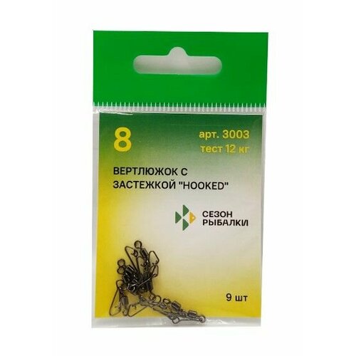 Вертлюжок с застежкой Hooked Сезон рыбалки Размер №8 (12 кг). Упак. 9шт