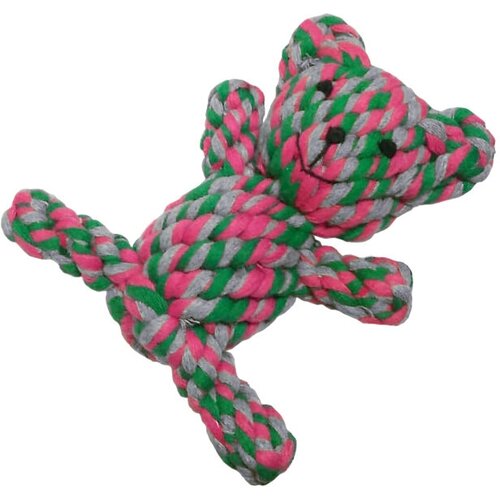 Кусалка для собак FISSA Плетеный мишка, 15 см, х/б, зелено-розово-серый, игрушка для собак, хлопок