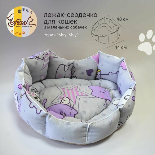 Лежак-сердечко для животных FISSA коллекция Мяу-Мяу, мягкая лежанка для кошек и маленьких собачек, модель В-106М, 48х44 см