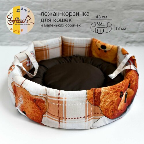 Лежак-корзинка для животных FISSA коллекция Мишутки, мягкая лежанка для кошек и маленьких собачек, модель СВ-101 43х43 см