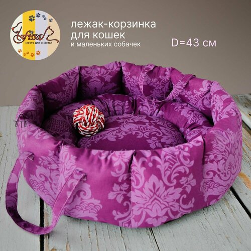 Лежак-корзинка для животных FISSA коллекция Сапфир, мягкая лежанка для кошек и маленьких собачек, 43х43 см, модель Р-101