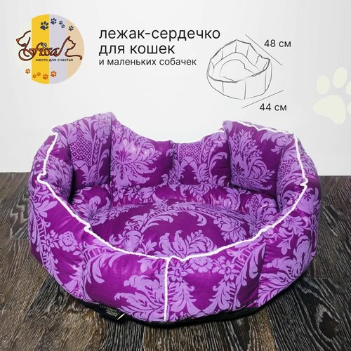 Лежак-сердечко для животных FISSA, коллекция Сакура, мягкая лежанка для кошек и маленьких собачек, модель С-106М, 48х44 см