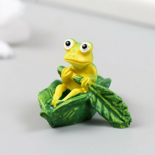 FlashMe Фигурка для флорариума полистоун Лягушонок в листе-лодочке 4х3,5х3 см