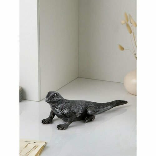 FlashMe Садовая фигура Варан, полистоун, 14 см, серебро, 1 сорт, Иран