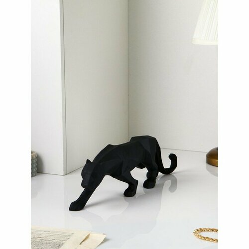 FlashMe Садовая фигура Крадущаяся львица, полистоун, 14 см, матово-чёрный, 1 сорт, Иран