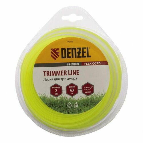 Леска для триммера, круглая 2 мм х 63 м, блистер Flex cord Denzel