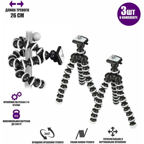 Гибкий штатив трипод Flex-26 для телефона, универсальный держатель для фотокамеры, 3 шт