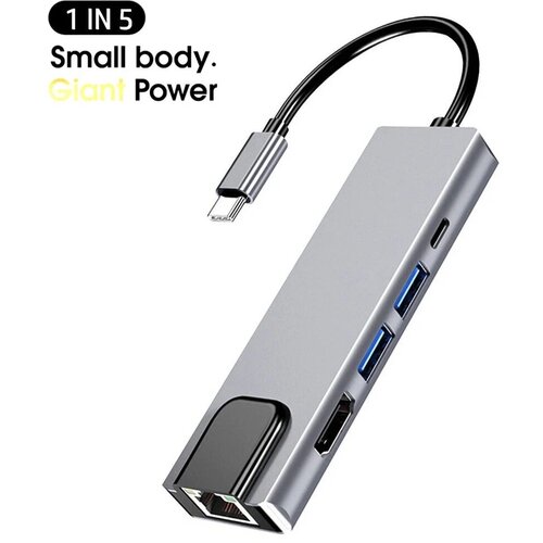 Хаб/Концентратор USB-C HUB 5 в 1 Forall/Переходник с USB 3.0, RJ45, HDMI 4K, PD Зарядка до 100W для MacBook Pro/Air