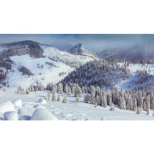 Картина на холсте 33x50 LinxOne "Zima blue beauty peisaj" интерьер для дома / декор на стену / дизайн