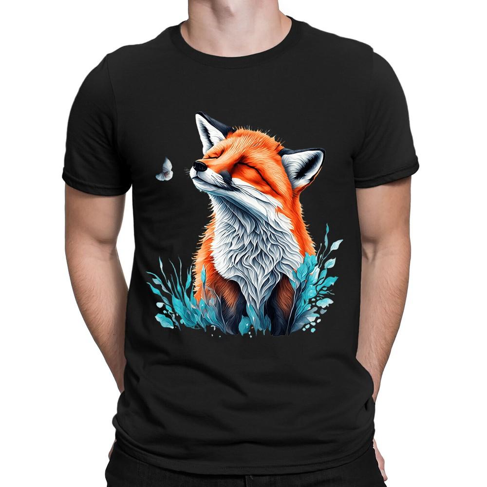 Fox And Butterfly Art Cool Animal Lovers Novelty Mens Womens T-Shirts Top #DNE S