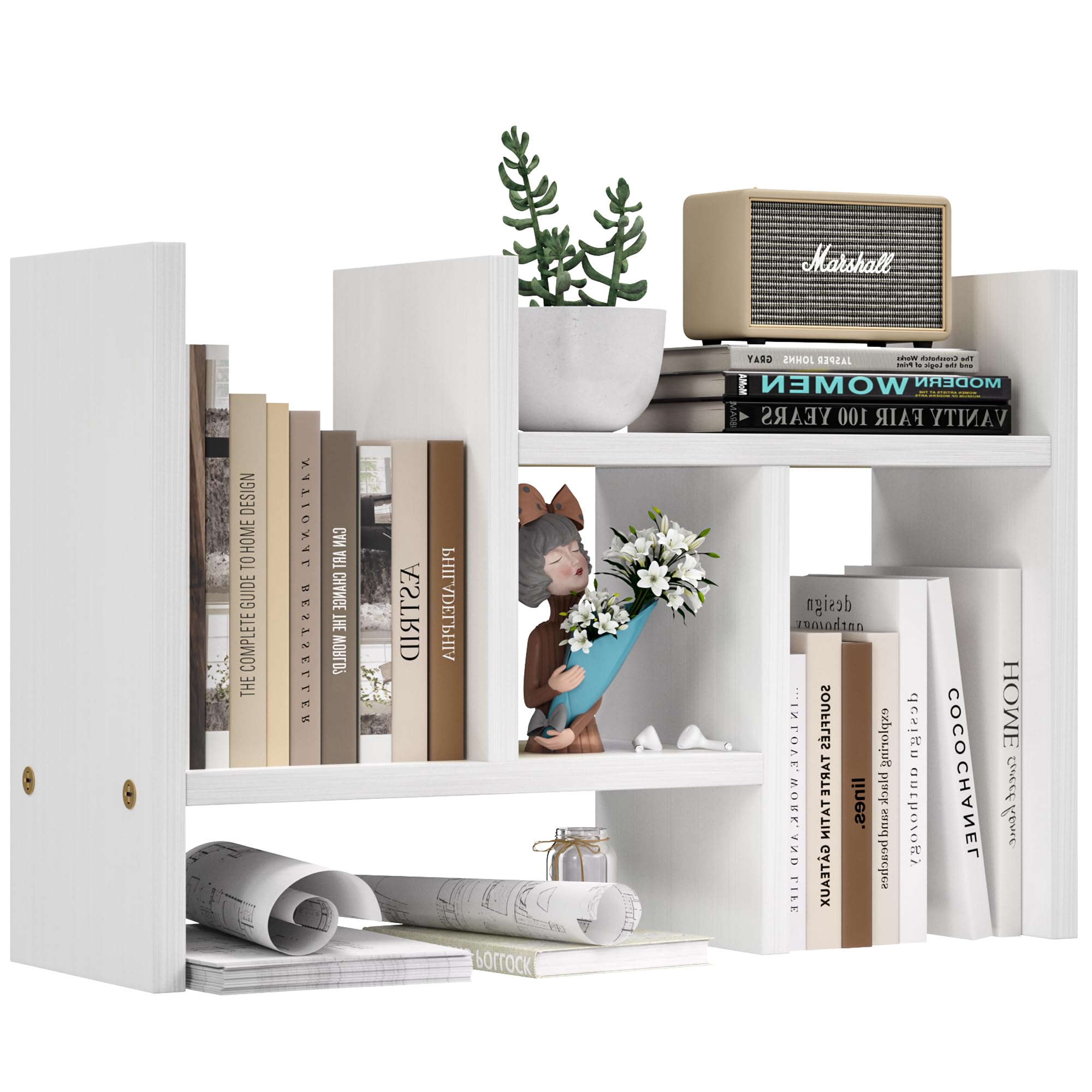 NIIKOUE Desk-Mounted Shelf, Storage Rack, Multi-Assembly Method, Tabletop, Extendable, 3 Combinations, Wooden, Clean, Organized Book Stand (White)