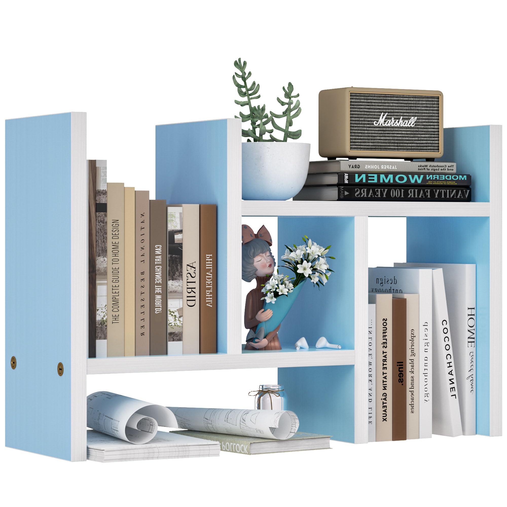 NIIKOUE Desk-Mounted Shelf, Storage Rack, Multi-Assembly Method, Tabletop, Extendable, 3 Combinations, Wooden, Clean, Organized Book Stand (Blue)