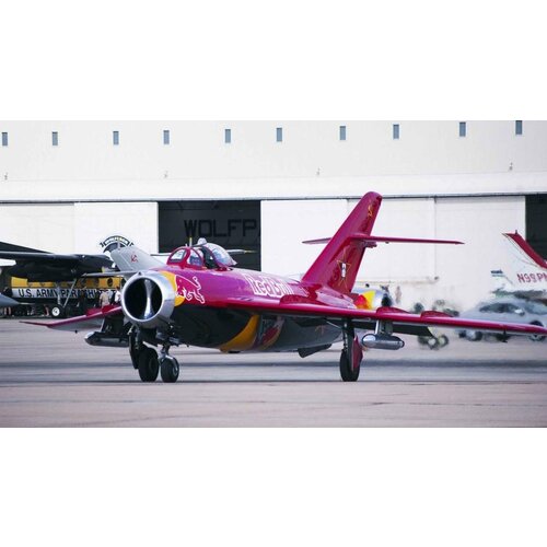 Картина на холсте 60x80 LinxOne "Миг-17, реактивный истребитель, взлетная полоса, fresco" интерьер для дома / декор на стену / дизайн