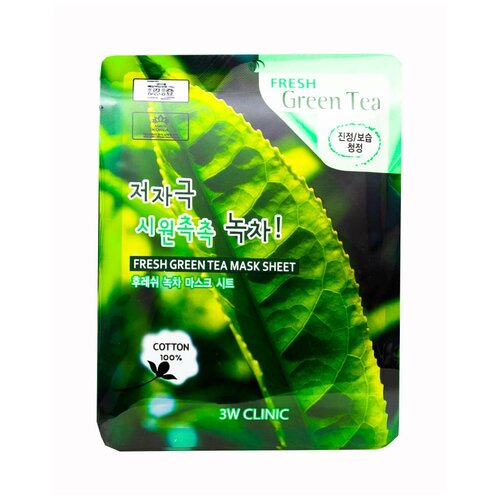 Маска для лица 3W CLINIC с экстрактом зелёного чая - Fresh Green Tea Mask Sheet, 23 мл