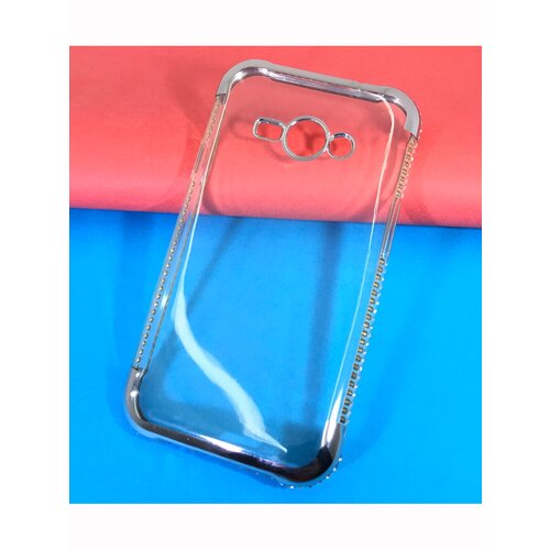 Чехол для Samsung Galaxy J1 ACE (J110) Накладка прозрачная с окантовкой из блестящих камушков