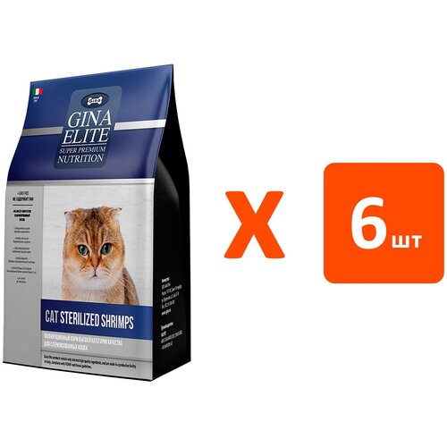 GINA ELITE ADULT CAT STERILIZED SHRIMPS для взрослых кастрированных котов и стерилизованных кошек с креветками (1 кг х 6 шт)