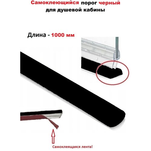 Порог для душевой кабины, самоклеющийся, черный, длина 1 метр.