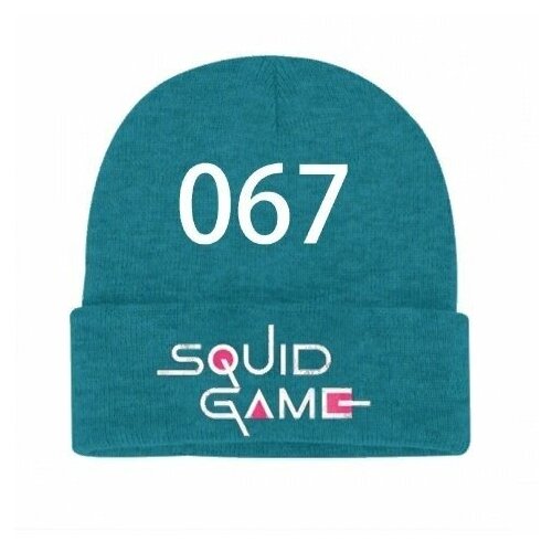 Шапка Шапка бирюзовая Игра в кальмара с номером игрока 456 SQUID GAME демисезонная, размер OneSize, мультиколор