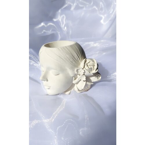 Дизайнерская статуэтка из гипса "Девочка с цветами" Белая Д. 8 см Ш. 10см В. 7см Губина отверстия 3,5 см.