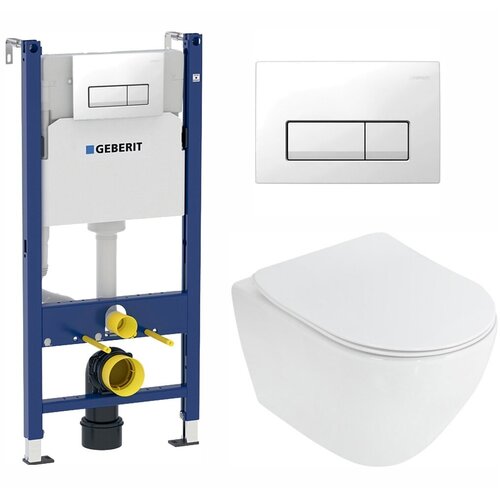 Инсталляция Geberit 111.154.11.2 + кнопка смыва Delta01 115.107.21.1 + унитаз Teymi Lina S T40102 безободковый с сиденьем