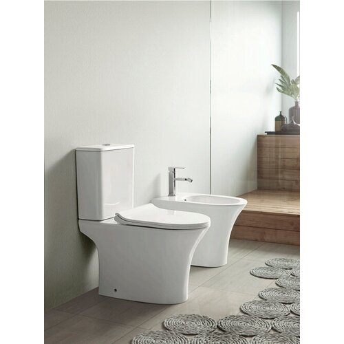 Напольный безободковый унитаз-компакт Creto Cer C3 1003-002Cer-C3W, белый, быстросъёмная крышка из дюропласта с микролифтом Slim (арматура Geberit)