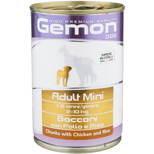 Консервы Gemon Dog Mini д/собак мелких пород кусочки курицы с рисом 4 шт.*415 гр. (4 банки)