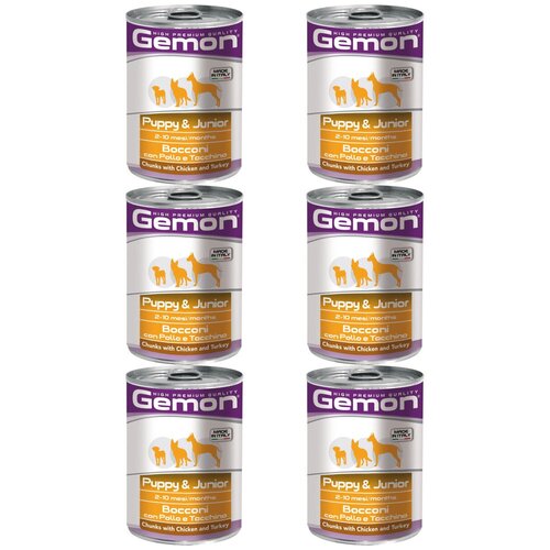 Gemon Dog консервы для щенков кусочки курицы с индейкой 6шт Х 415г