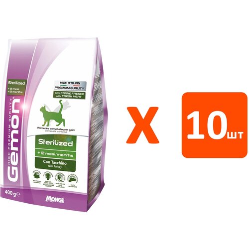 GEMON CAT STERILISED для взрослых кастрированных котов и стерилизованных кошек с индейкой (0,4 кг х 10 шт)