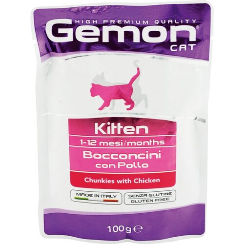 Влажный корм для котят Gemon Kitten кусочки в соусе с курицей 3 шт*100 гр