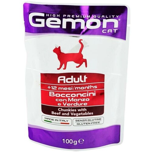 Влажный корм для кошек Gemon с говядиной и овощами 5 шт*100 гр