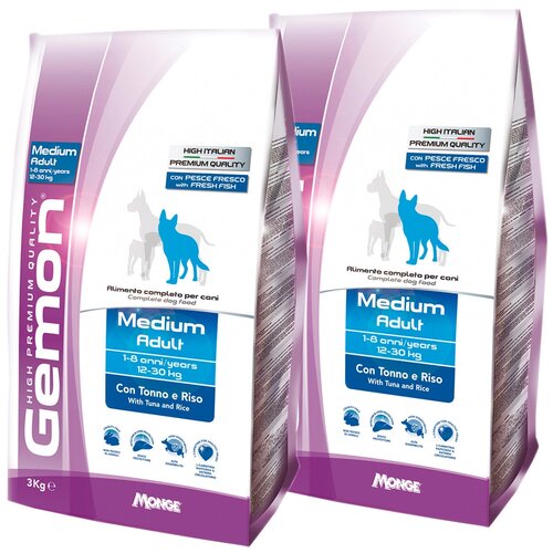 GEMON DOG ADULT MEDIUM для взрослых собак средних пород с тунцом и рисом (3 + 3 кг)