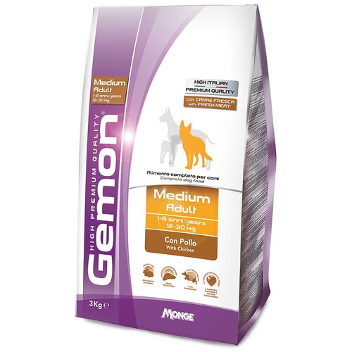 Корм Gemon Dog "Medium", для взрослых собак средних пород, с курицей, 3 кг