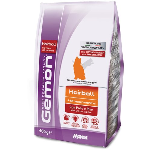 Сухой корм для взрослых кошек Gemon Cat Hairball, выведение шерсти, с курицей и рисом, 400 г