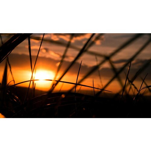 Картина на холсте 33x50 LinxOne "Закат grass трава горизонт" интерьер для дома / декор на стену / дизайн
